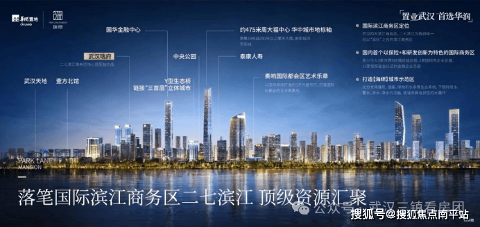 1、二七滨江 武汉的世界进程二七滨江,作为武汉冠以“国际”之名的滨江商务区、国内首个以“保险+”和研发创新为特色的国际商务区;SOM、AECOM、日建、世邦魏理仕等全球前十智囊团荟萃;汇集超16座超200米摩天地标群;未来至少引进13家银保监会认证的金融企业总部;二七滨江国际商务区未来将成为武汉向全球展示的窗口,缔造比肩纽约曼哈顿、上海陆家嘴的全球金融舞台。
