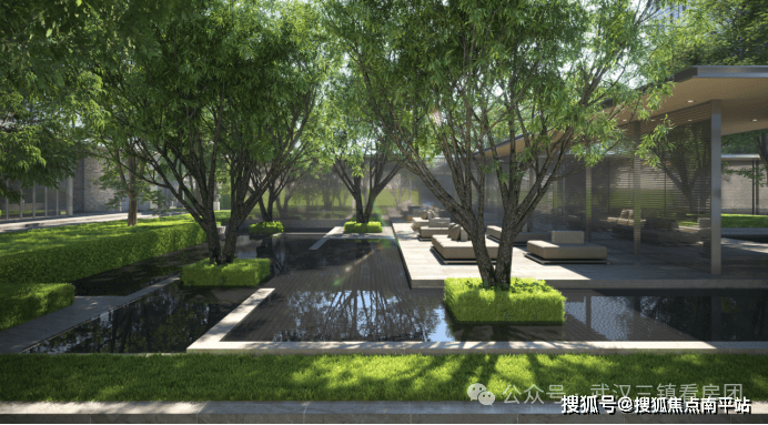 2、都会度假园林:源于酒店式都会度假理念,创造森系物语+都市客厅+岛屿归心3重景观,从下沉庭院、阳光草坪、绿化屋面的立体景观,到岛屿会客厅、邻里花园、全龄活动场地等,无处不在的度假酒店式生活氛围。