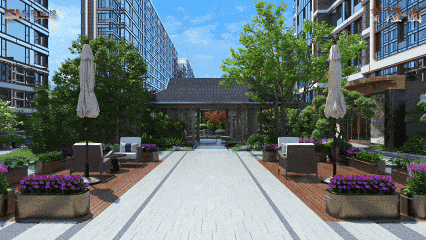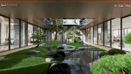 归家仪式感:300米景观中轴串联下沉式庭院会所、四水归堂会客厅,步移景异间仿若穿越千年雅集。