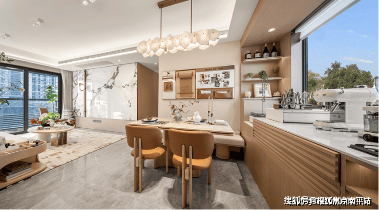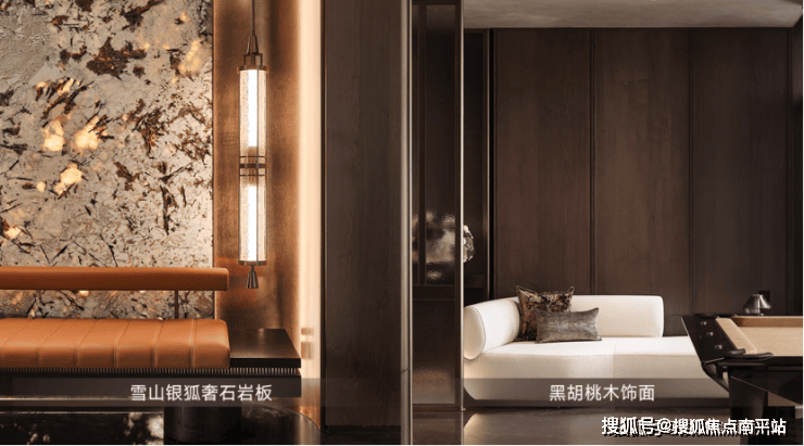 工法工艺上,项目以星级酒店的匠造标准重塑公区质感,雪山银狐奢石岩板背景,黑胡桃木饰面上墙,石材水刀拼花铺地,非遗工艺螺钿漆画装饰,升级美学质感,让尊崇感遍及每一个日常。