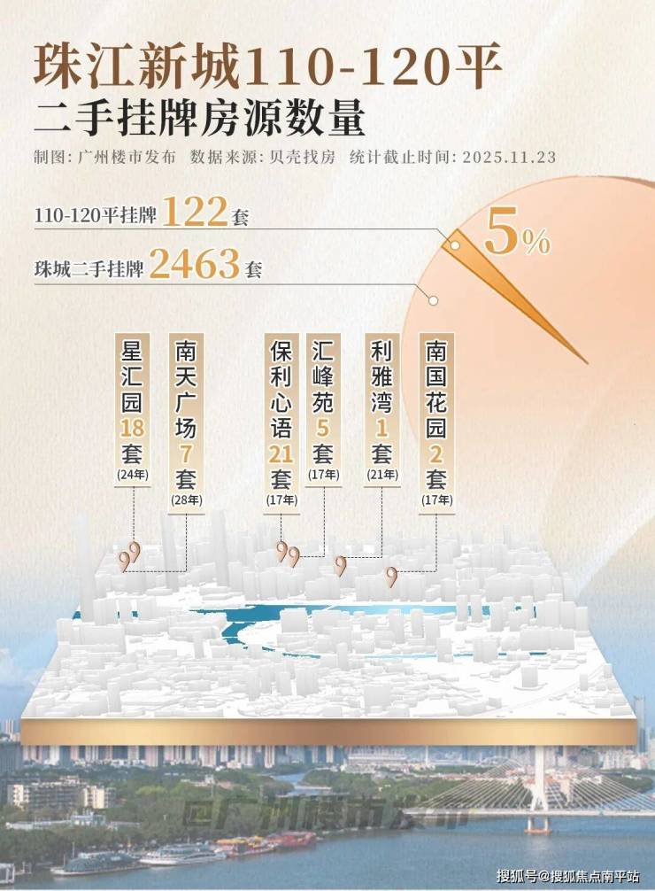 但珠城2400多套二手挂牌房源中,建面110-120平三房, 占比仅有5%。
