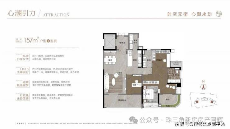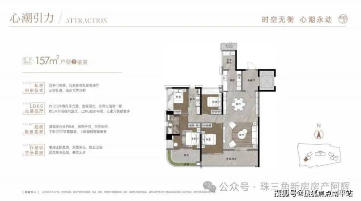 项目主打157-257㎡的纯粹大平层,全部是四房起步,保证了圈层的纯粹性 。