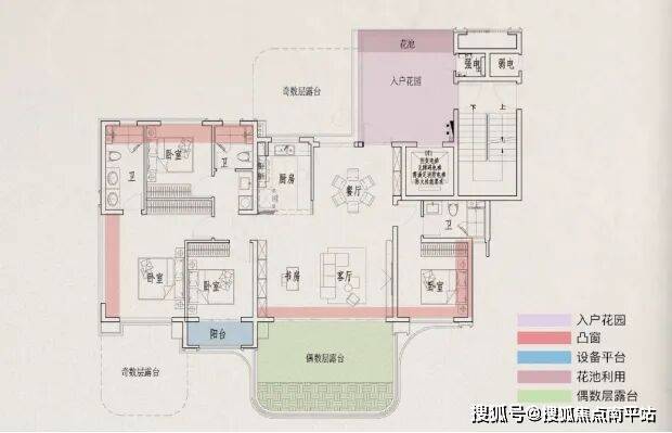 2、超四代住宅,南北双花园,奇数层4个、偶数层3个外挂!(2个露台、入户花园、阳台);
