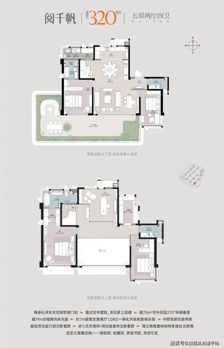 项目创新采用“奇偶错层”设计,建面约150-320㎡户型户户配置超阔尺空中花园,通过立体生态住宅政策红利,使得得房率超出既往市场天花板。尤其是建面约320㎡复式空中墅,以约75㎡空中花园、270°环幕视野,将洛阳江、清源山、城市天际线纳入日常画框,更以“LDKBG一体化”设计(客厅-餐厅-厨房-阳台-花园联动)实现别墅级的空间体验,双层主卧、星空露台、五星级双主卧套间等设计,让生活成为一场流动的盛宴。