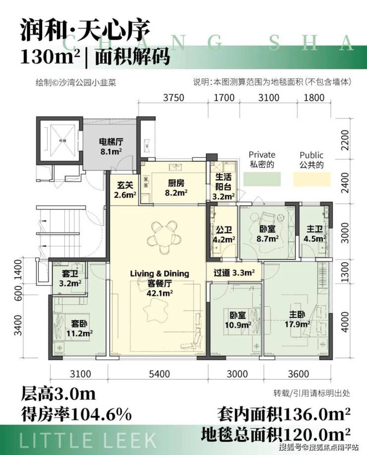 整体来看,润和天心序的户型逻辑非常清晰: 以高得房率弥补公摊,以2梯2户提升品质 ,以四房适配家庭结构,在教育型楼盘中十分少见。