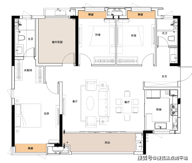 约128㎡奢阔大三房:户型方正,南向三开间、大阳台、多飘窗设计,约78%非承重墙占比,减少过道、拐角等冗余空间,增强空间拓展性,为不同家庭营造更为丰富的生活体验。