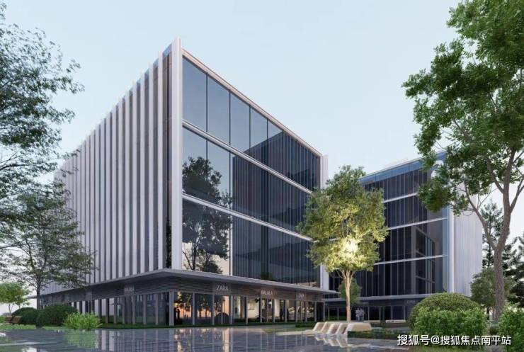 为保障塔楼内部充足采光与开阔视野,立面采用大面积玻璃幕墙围合设计;通过统一的立面语汇,使园区内不同体量的建筑形成视觉统一性,进而重塑场地空间气质,构建兼具辨识度与高端感的建筑形象。