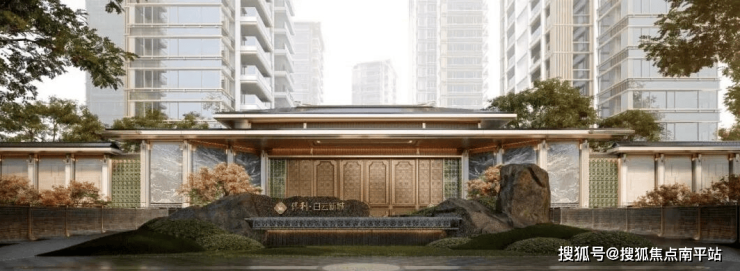 保利云瑞延续瑞系“祥瑞、雅致”的精神内核,案名寓意“云山大宅,瑞见东方”,却跳出“城中造王府”的模式,拥抱白云山千年自然文脉,融入岭南非遗等在地文化,实现从“复刻”到“创新”的升级。从主入口设计过程稿可见,重檐顶搭配对称形制,门前叠水、置石、红枫错落,既有古建庄重,又有当代豪宅气场,堪称白云新城新豪宅封面。
