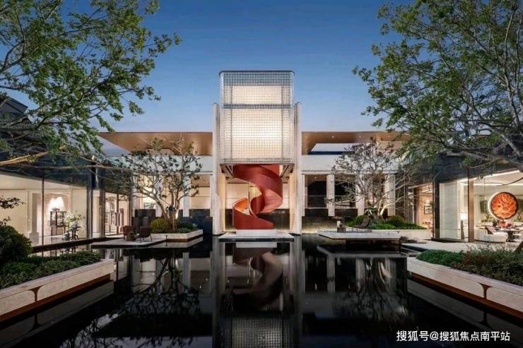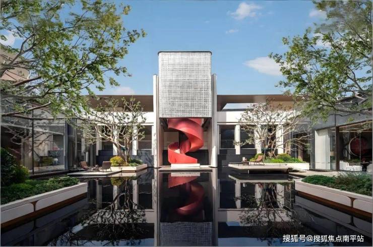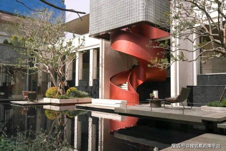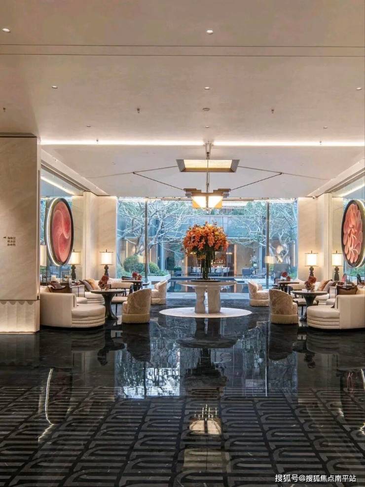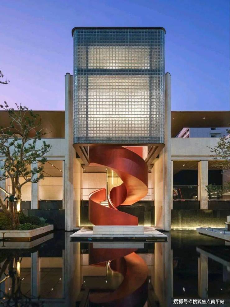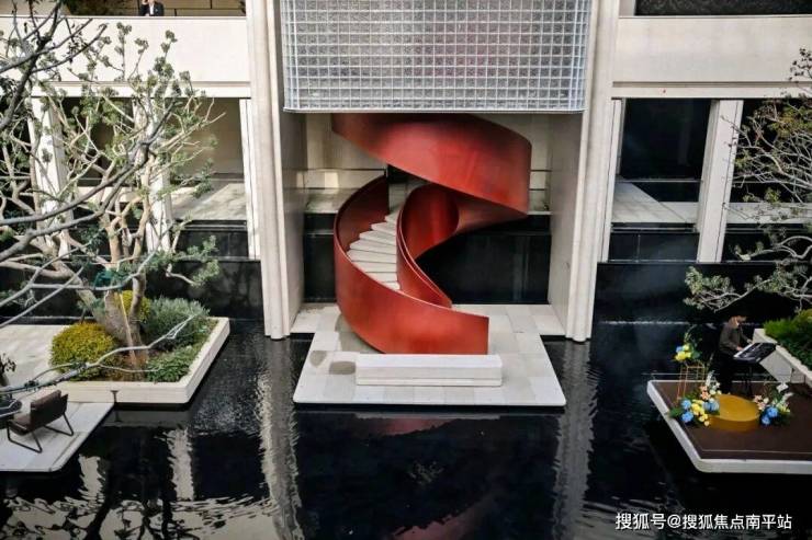下沉式浮光水院,空间豁然开阔,奢享氛围尽在其中。池畔四株名贵铁冬青,灵动飘逸,为水院注入雅致生机。同款于东京爱马仕之家的玉穹琉璃光塔,乃水院点睛之笔,由2844块晶莹玻璃砖精心构筑,阳光穿透时,光影璀璨似星河倾泻;夜幕降临,灯影流转如流光漫舞,惊鸿之美令人过目难忘。塔下刺桐花旋转楼梯盘旋而上,宛如绽放的花瓣扶摇直上,将艺术之美与美好寓意融入空间肌理。