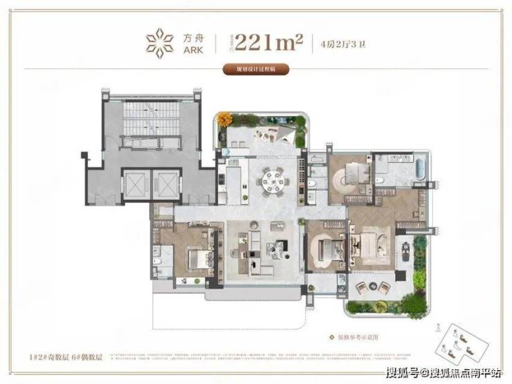 项目规划建面约218-314㎡的四代住宅,以LDKG无界社交厅和多套房设计为核心,将墅级尊享与私密静谧完美融合。南向超大面宽与270°环幕观景窗,让园林美景与城市天际线一览无余。室内采用隐形收纳系统与黄金三角动线设计,厨房、餐厅、客厅5米内高效联动,奢阔尺度与实用功能和谐共生。
