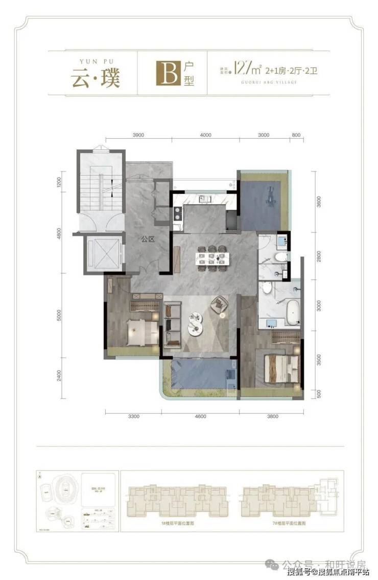 B户型: 建面约127㎡ 2+1房2厅2卫