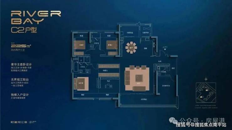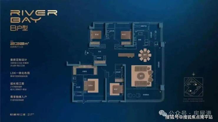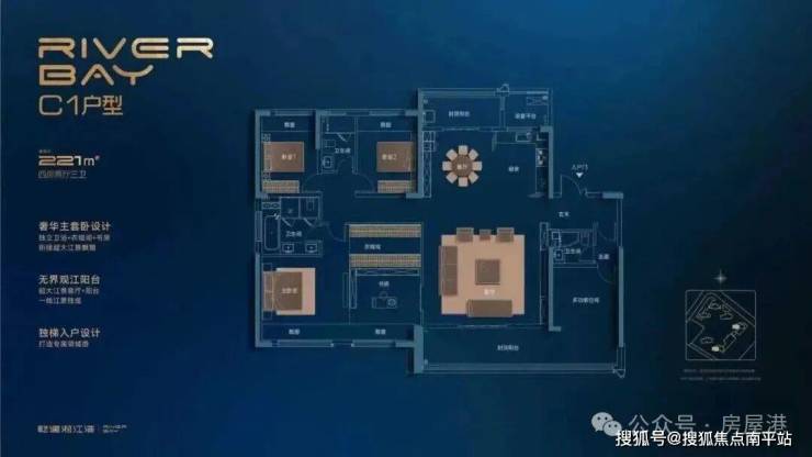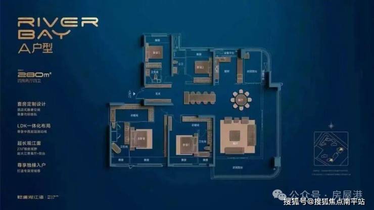 项目主推建面190-280㎡大平层,没有小户型“高低配”,圈层纯粹,所有户型均层高3.15米,且坐拥270°无遮挡江景,空间格局更加立体化,视野顶级。