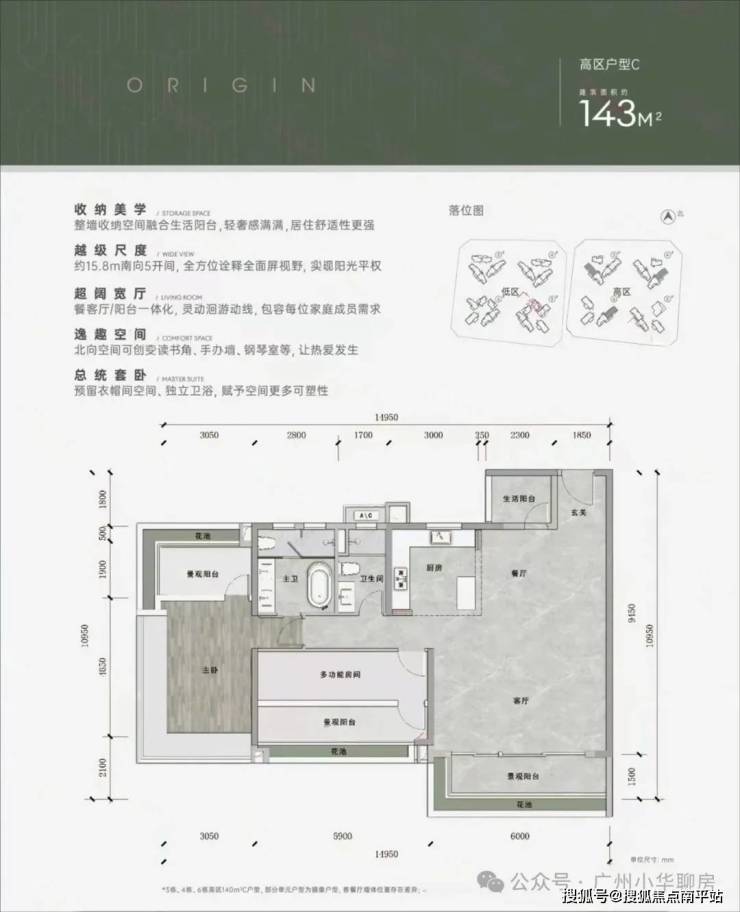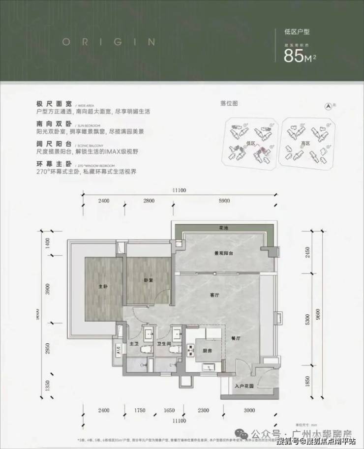 低区以小户型为主,高区多是大户型,居住舒适度会更佳。