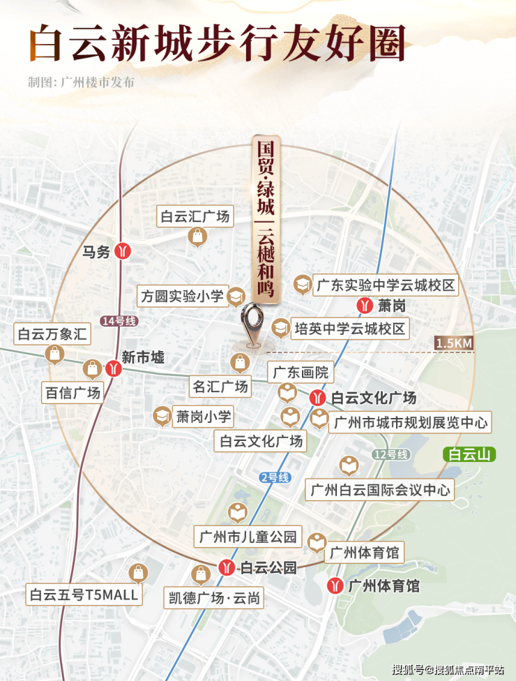 从项目出发,去往白云新城核心区大多数城市配套都是步行可达。