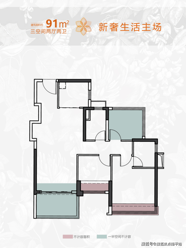 ● 建面约91㎡三空间两厅两卫: