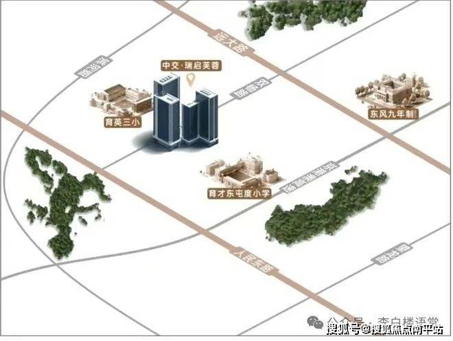 ▲楼盘配套的东风九年制初中部示意,步行距离约800米