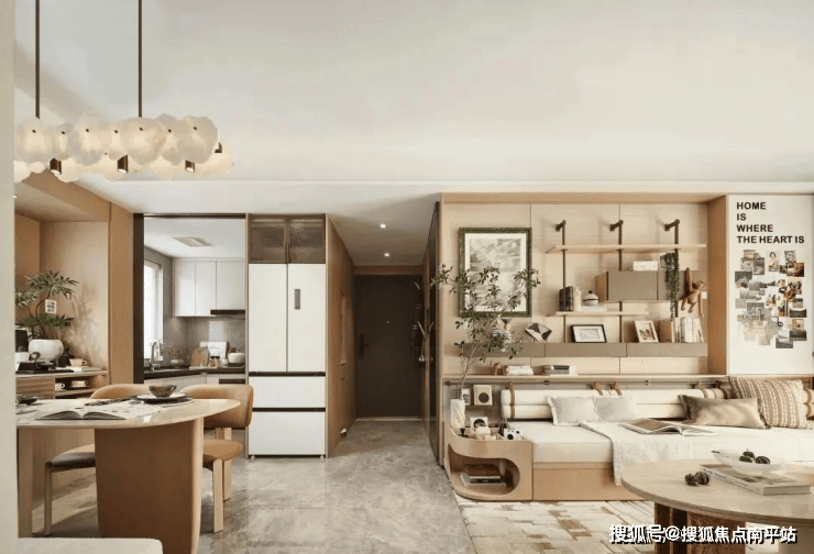 (1)62㎡两房:通过18%超低公摊实现套内面积51.8㎡,创新性采用双面宽阳台(进深1.8米)扩展使用空间,厨房U型布局较传统L型操作效率提升40%;