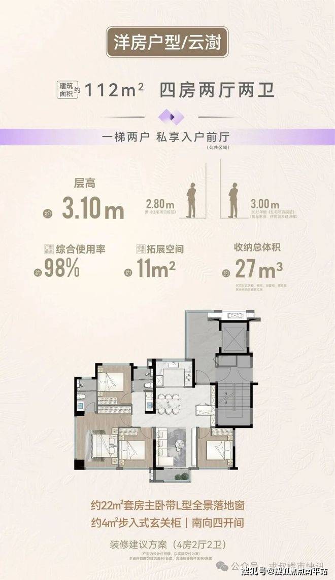 其中64㎡精装两房得房率85%,客厅卧室全朝南,主卧带衣帽间,顶配精装+智慧社区,主打小而精。