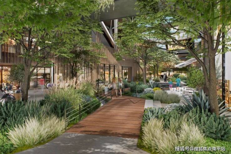既有盒子商场,又有约3.5万㎡立体空中公园穿插7大主题场域,融合茂密的植物,可以体验到大自然般的购物环境,类似曼谷Mega Food Walk,日本难波公园。