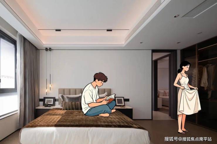 空闲房间可打造安静的冥想空间、专业的健身领地,或者将主卧与书房分开两边,工作与生活设立明显边界,即便深夜处理紧急事务,也不打扰爱人休息。