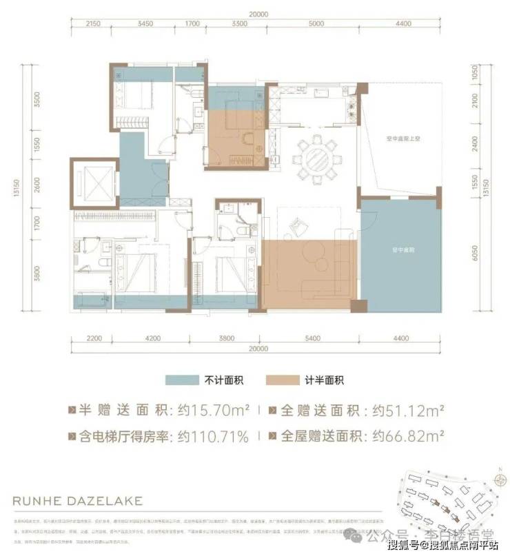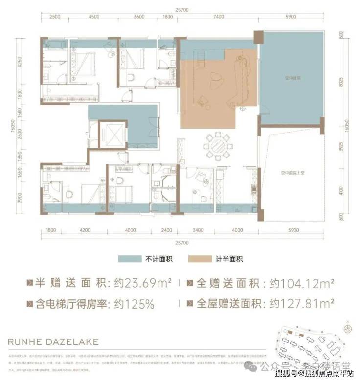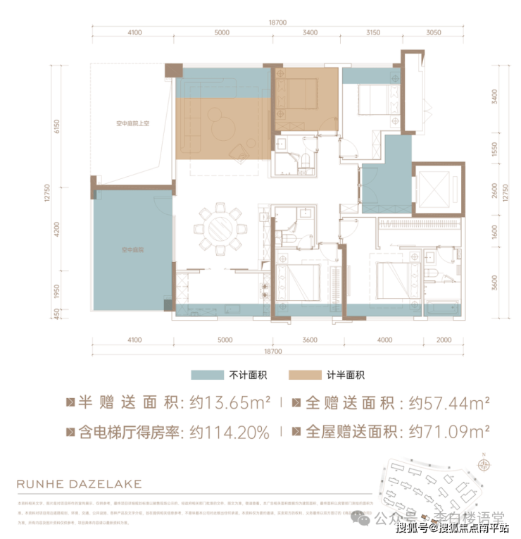 划重点,这两个户型在得房率上更实在。两个户型全屋多享面积超70㎡,相当于多了一套旧规小户型,得房率达到110-114%。