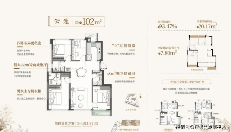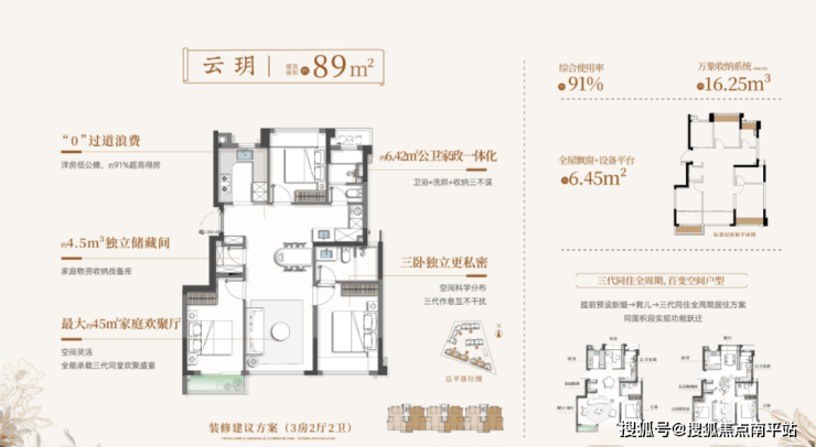 建发璞云凭借新规迭代+户型优化,户户约90%综合使用率,82-89平做到3房2卫,102-113平做到4房2卫,功能性和舒适性更强!