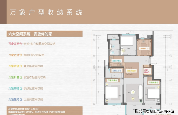 此次的万象收纳系统,其89㎡户型收纳容量,约4.5m³独立储藏间,全屋收纳更是达到了16m³,相当于三只成年大象的体积。102-113平约8m³独立储藏间,全屋收纳达22-22.7m³。