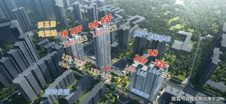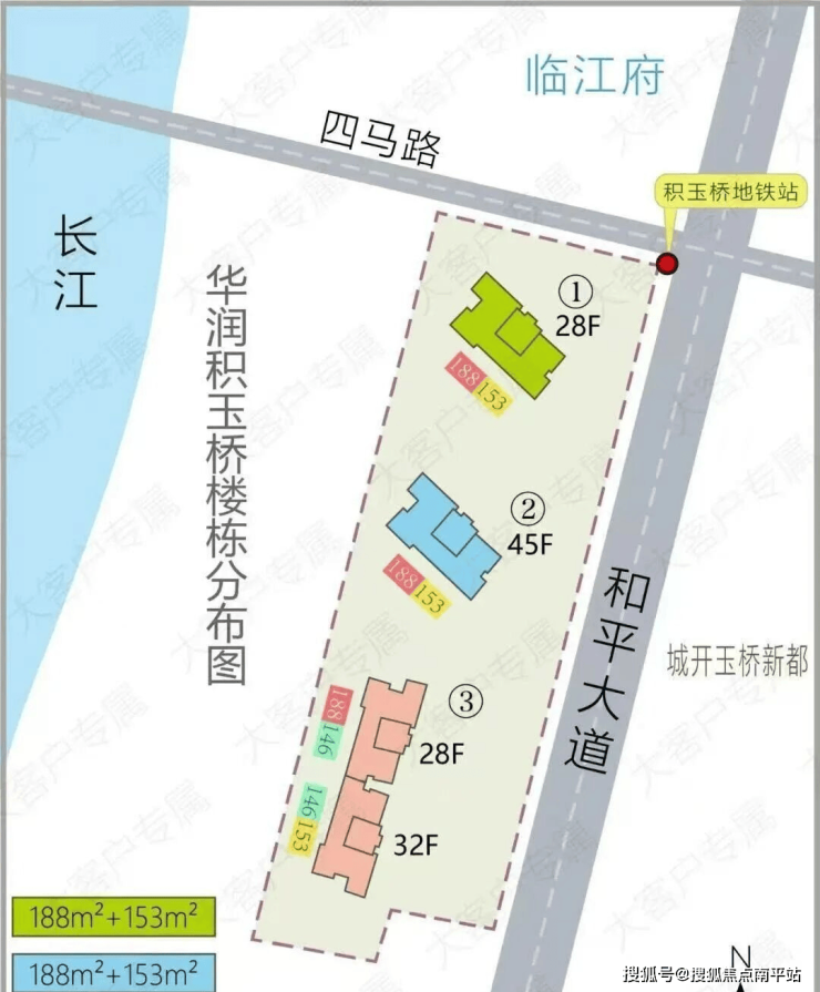 其中,1号楼和2号楼,2-15F都是153㎡户型;16F及以上,西边户是188㎡户型,东边户是153㎡户型。