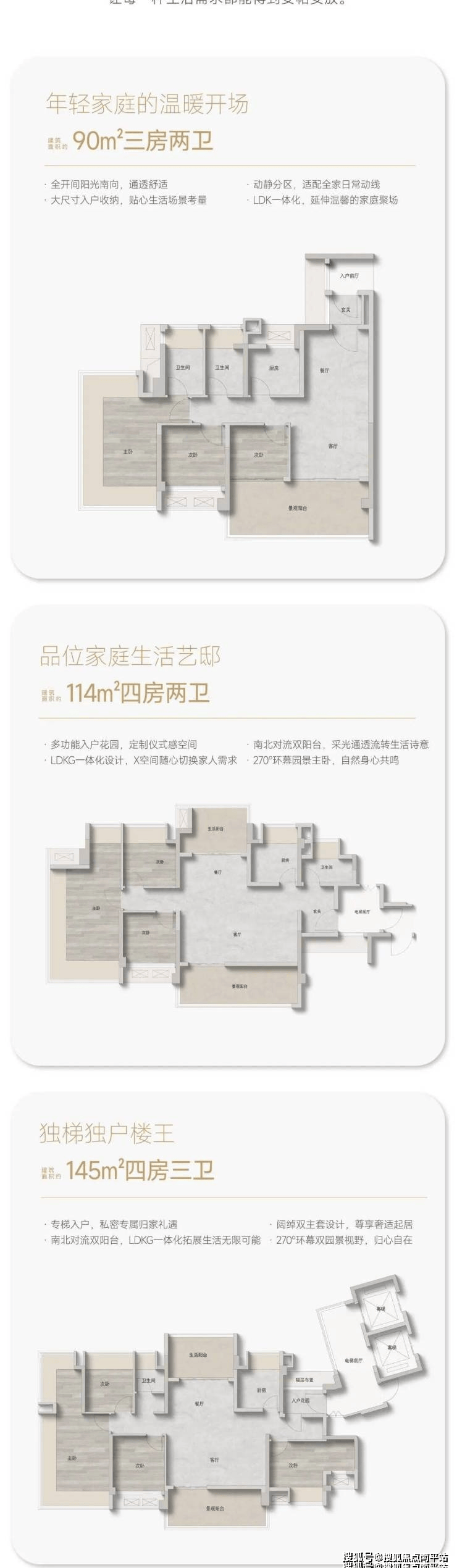 【面积】约90-114-144㎡的三至四房