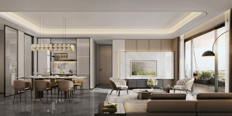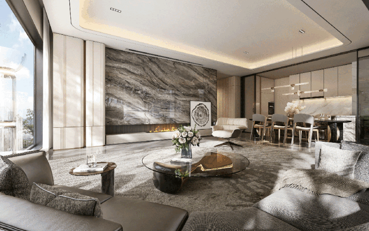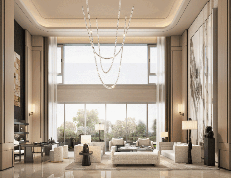 约22米南向巨幅采光面如天然画框,阔尺社交厅与约 最大约58㎡空中花园无缝衔接, 270°环幕视野让家的每一刻都沉浸在CLD的繁华与自然的光影之中。