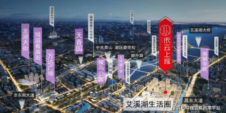 【招商金茂正荣依云上城】位于青山湖区昌东大道与月坊南路交汇处。艾溪湖生活芯,周边五大公园为邻,1、2号线双地铁环绕。东面为昌东大道主干道,贯通南北,多维路网畅通全城。周边龙湖天街(在建)、青山湖万达、绿滋肴庙街、京东天虹等商业环伺;南钢中学,万科城小学,北面规划有1块教育用地与社区幼儿园等教育资源集萃,享12年优质全龄段教育;1.5公里范围内含有天香园、都市候鸟公园、海洋公园、寰宇万象公园、艾溪湖湿地公园、幸福渠等丰富天然生态资源。江西中医药大学第二附属医院也在项目东侧。