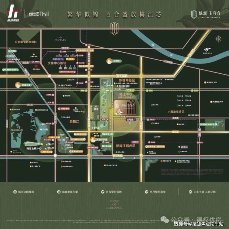 中国高端人居领航者绿城,历经30年淬炼,于天津深耕10载。2015年,绿城在梅江板块,以天津全运村为起点,正式与天津结缘,也成为大梅江片区的开局者、城市版图的共建者。10年间,绿城在天津陆续立著16座人居经典,每一个作品皆成为区域乃至城市的产品力典范。2025年,绿城再入河西,携手本土房企标杆侯台集团,于梅江之芯,以一席人文新著——绿城·玉百合,演绎城市奢居的至臻理想。
