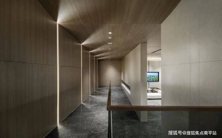地下负二层与负一层转换处特设简雅开阔的【转换会客厅】,扶梯、电梯、无障碍通道三种模式快捷上下,无障碍空间及转折处理得非常贴心安全。