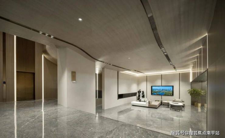 人脸识别才能进入的地下负一层社区大堂,直通负一楼楼栋入户大堂,洗练的线条衬托得大大方方,拐角进入就是奢华电梯直达家门。