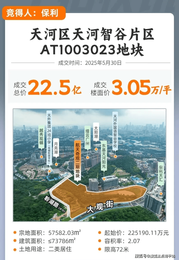 2025年5月30日保利拿下航天奇观二期地块,总价约22.5亿,楼面价3.05万/平!(未扣除配建,按总建面计算)