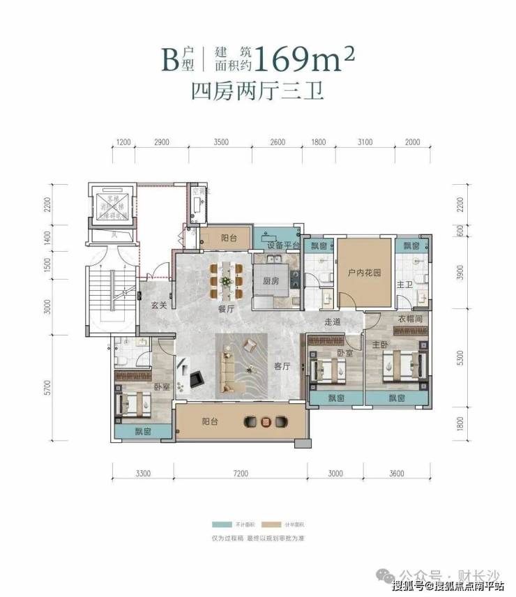阳台/套内花园半赠送+4飘窗/设备平台全赠送:更高实用面积
