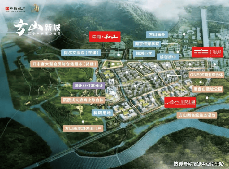中海和山位于方山南,与2024年开业的开市客(Costco)一街之隔,紧邻方山风景区,隔壁就是规划中的小学。