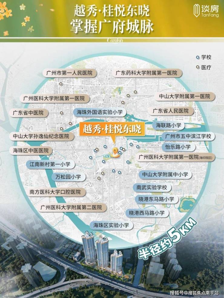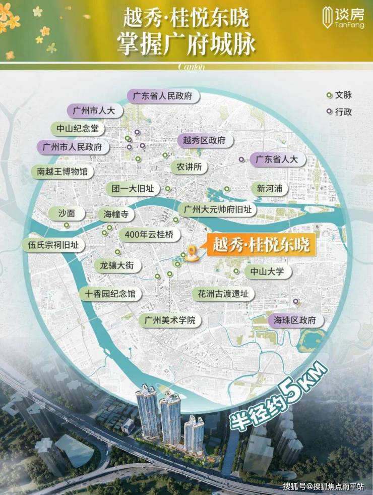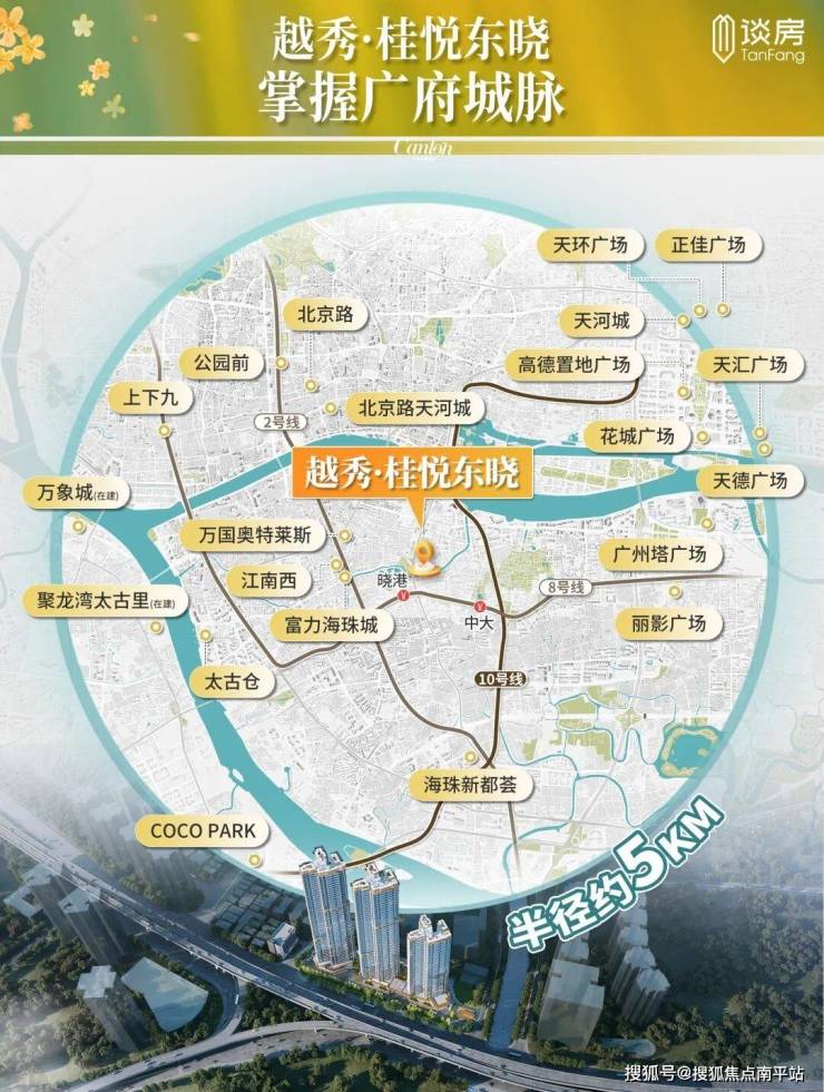 以项目为圆心,画一个5公里的生活圈,白鹅潭、白云山、珠江新城、珠江后航道为界。