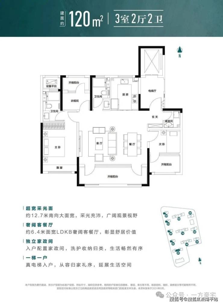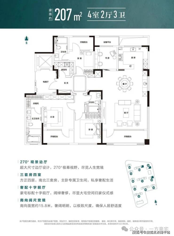精研户型方正通透,光幕大横厅设计,为南向宽敞阳台打造广角瞰景视野