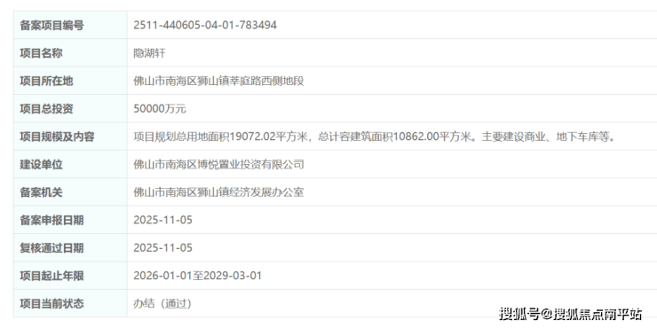 此外,同一天还有一宗商业地块完成备案。名为“隐湖轩”的商业项目拟投资5亿元,将于2026年1月1日动工。该商业地块要求引入四星级或以上知名品牌连锁酒店,并配建不少于1000平方米的办公用房和不少于2000平方米的金融机构。