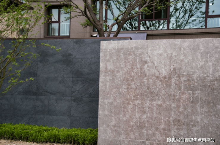 比如,社区围墙大面积使用爱马仕灰仿大理石瓷砖镶贴,这在济南属于首创了,很多3万+豪宅都未做到如此规格。