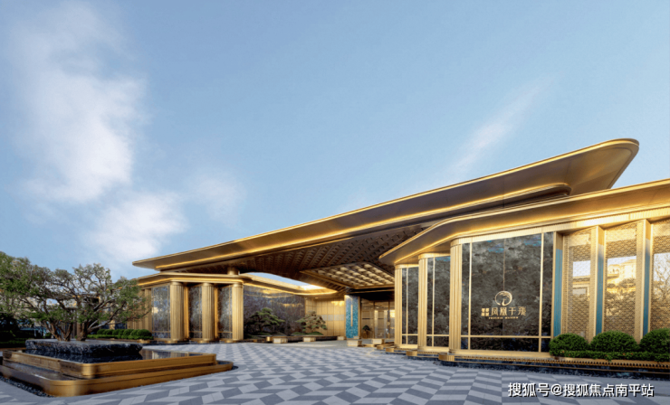 花都首屈一指的约52米U型高定酒店式门府,其设计灵感源自“凤凰展翼”的壮丽景象,巧妙地将这一自然之美融入建筑之中。门府界面以约52米的U型超长形态优雅铺展,不仅彰显了空间的开阔与延伸,更寓意着居住者生活的无限可能。