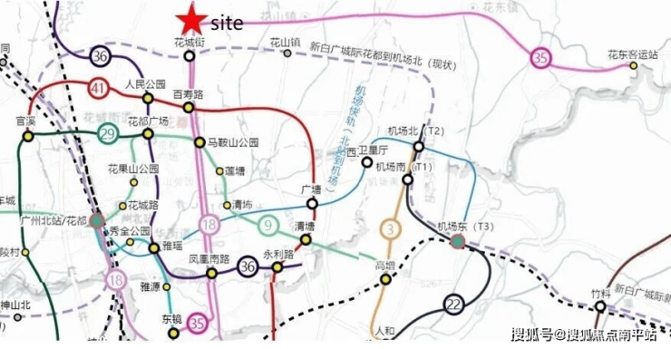 贯通花都南北,距离地铁18号线&穗莞深城际-花城街站仅约800米(直线距离)。