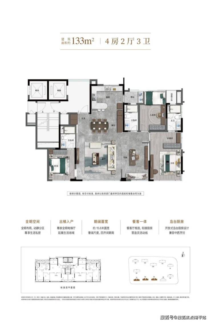 1⃣【133㎡户型】套内:146.41㎡(不含电梯厅10.12㎡)得房率:110.1%