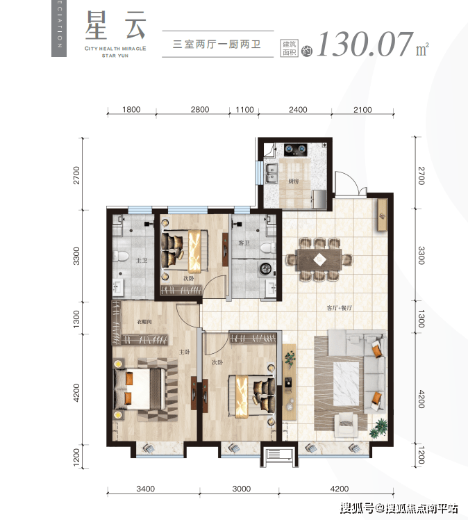 南向三开间,独立衣帽间,予生活舒适美好