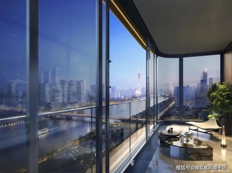 其中,1号楼最低层起步高度达27米,相当于普通住宅8层以上。既隔绝喧嚣,又将景观视野最大化。珠江江景被框进窗户,羊城天际线则被固定成业主的生活背景。