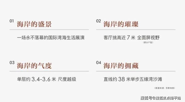 第二排小院墅面积190-210㎡,兼顾舒适度与私密性。第三排洋房170-180-333㎡多元户型,其中下院170-210㎡、平层180㎡、顶复333㎡,第四排规划4栋四代高层,面积段235-280-325㎡。产品自带6米挑高设计,搭配超11米巨幕客厅,坐拥一线海景视野,观景体验拉满。这样的户型分布,也足以反映出项目定位之高以及面向客群之优质。