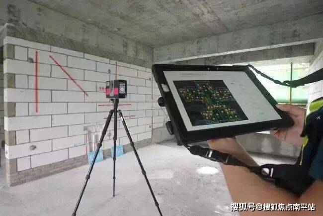 智能设备平台的深度应用进一步提升项目管控能力。在施工现场,该项目部署测量机器人、混凝土天花打磨机器人等装备,其中测量机器人1小时可完成300平方米实测实量,效率较人工提升3倍,数据实时上传“157”智慧工地平台;创新“铝模窗台企口压槽+45度斜坡”设计,双重防护强化建筑防水性能;研发“楼板厚度控制器+板厚控制钎”组合工具,可以实现混凝土浇筑全程动态监测,有效提升了建筑实体质量。
