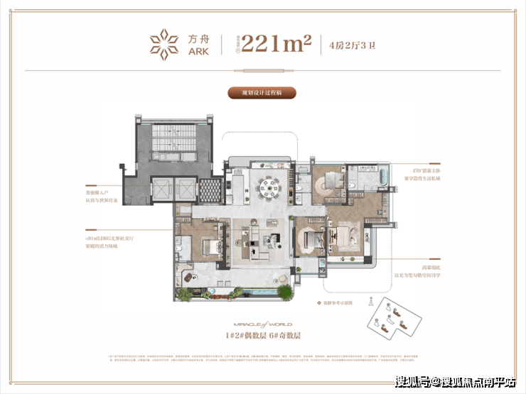类独梯入户+约6㎡电梯厅,归家仪式感拉满;约91㎡LDKG无界社交厅,容纳峯层多元生活;奇数层享南北双露台,偶数层拥南向超大空中花园,同频墅级居住享受;270°环幕主卧,奢享隐贵生活私域;实际可用面积达约239㎡,比肩传统住宅约300㎡居住体验。