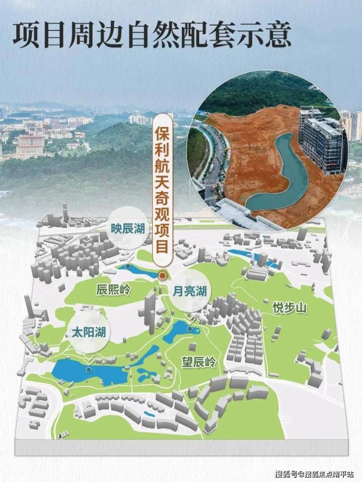 其东西跨度近300米,被保利航天奇观项目环抱其中,红线内所有建筑均围绕映辰湖打造。